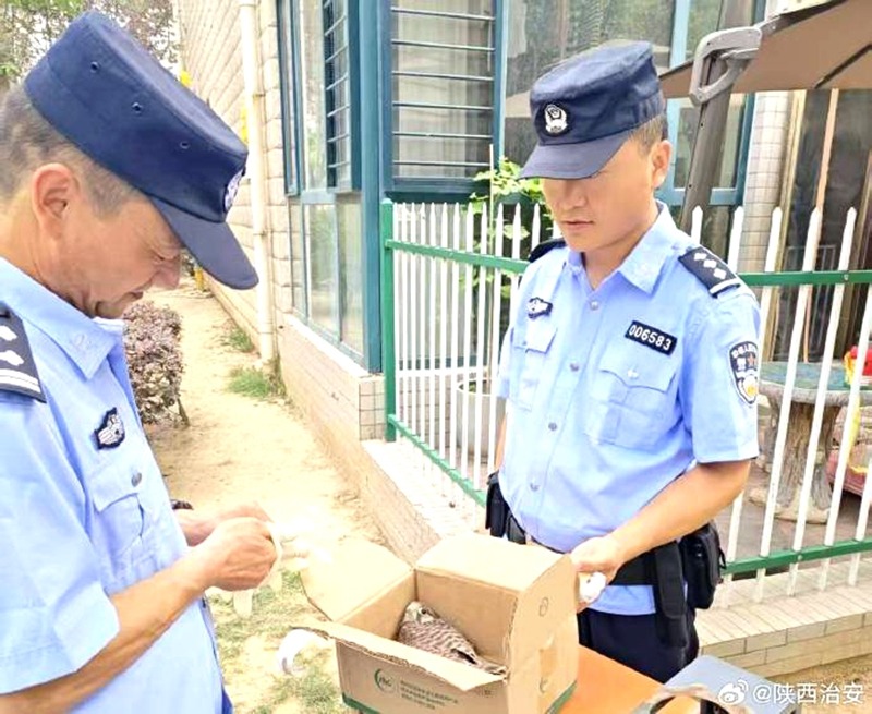 韩城公安救助一只国家保护动物。