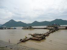 宜宾以上金沙江有分段、季节性通航里程751km,一般通行较小吨位船舶,兼有漂木。长江干流宜宾至宜昌为上游航道,全长1040km,河道平均比降0.22‰,平均流速在2m/s以上。宜宾--兰家沱,长303km,航道尺度(最小航深×航宽×弯曲半径,以下同)为2.7m×50m×560m,可通航1000t级船舶;兰家沱--重庆河段,长81km,航道尺度为2.5m×50m×450m,最大可通航800~1000t级船舶;重庆至宜昌660km,航道尺度为2.9m×60m×750m,单向运输通过能力约1000×10t,通航1000~1500t级船舶组成的3000t级船队,其中,香溪、黛溪以下76km的葛洲坝水库常年回水区,可通行1500~3000t级驳船组成的万吨级船队。三峡工程兴建以后,川江航道条件将大为改善,万吨的船队年内约有半年以上时间可直达重庆,航道年单向运输通过能力可达5000×10t以上。