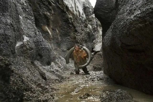 他们的工作方式和之前的淘金是相似的,圈一块地,然后用水枪冲刷地面,有时也会打隧道去寻找猛犸象牙。