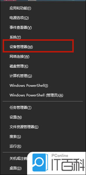 1. 按下键盘上的“win+x”键,选择“设备管理器”,即可打开设备管理器。