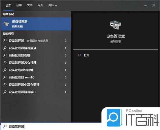 1. 我们也可以使用搜索功能,搜索“设备管理器”打开即可。