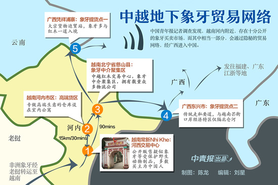 唐郜所走的,正是一条隐秘却成熟的中越地下象牙贸易通道。中国青年报记者调查发现,以越南Nhi Khe为起点,参与的地下中介、越南象牙村、中越物流公司、散客以及专业的象牙商人,一起构建起了这个横跨中越的贩牙网络。