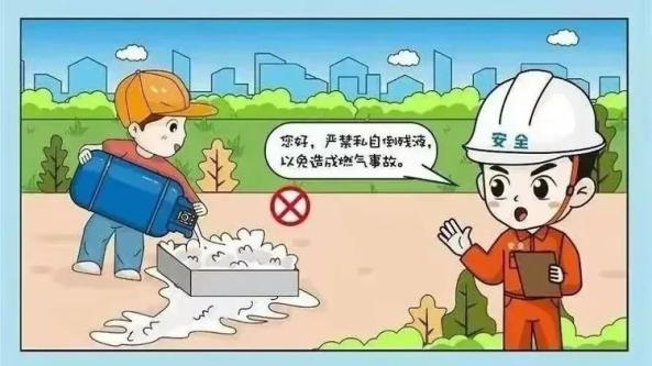 严禁私自导气、乱倒残液。不得倒放气瓶,以免造成燃气事故。