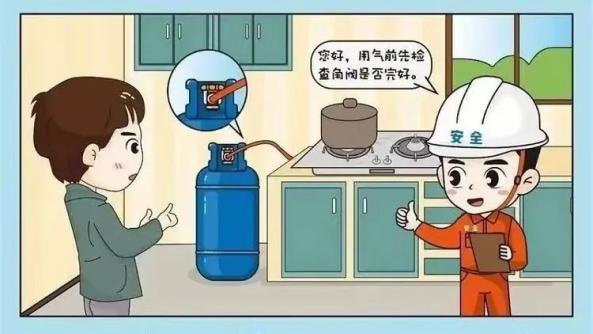为确保安全,请在出门时或睡觉前,关上液化石油气钢瓶角阀。