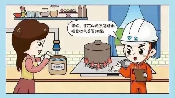 您可用洗洁精泡沫检查燃气设备连接处是否漏气,严禁用明火泄漏。
