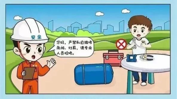 严禁私自维修钢瓶角阀、灶具等请有资质的维修供应商上门检修。