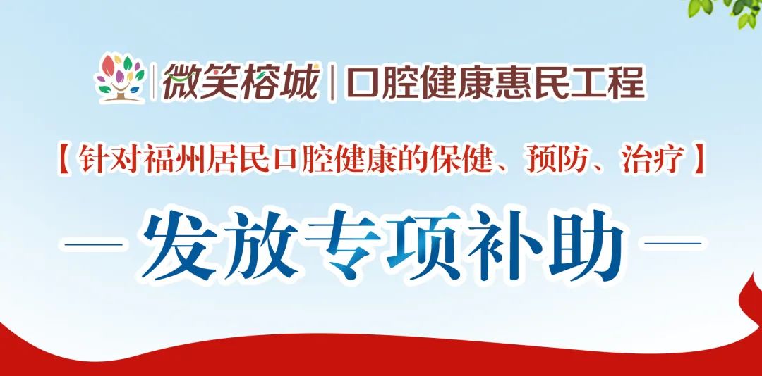 为解决百姓“看牙难、看牙贵”的难题,提高全民口腔健康水平,福州广播电视台、国家二级口腔医院——福州登特口腔医院联合发起“微笑榕城”口腔健康惠民工程,针对福州市民口腔健康的保健、预防、治疗发放专项补助。