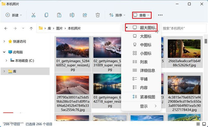 2.巧用超大图标布局查找图片 我们可以借助文件资源管理器的【超大图标】布局,尽可能地放大图片的缩略图,这样在查找图片时便无需一一打开查看。