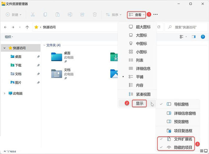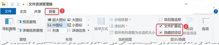 1.显示/隐藏文件扩展名与隐藏的项目 在 Win10 和 Win11 系统中,【文件扩展名】与【隐藏的项目】两个选项都位于【查看】选项下,只是位置稍有不同。 Win10 的文件资源管理器