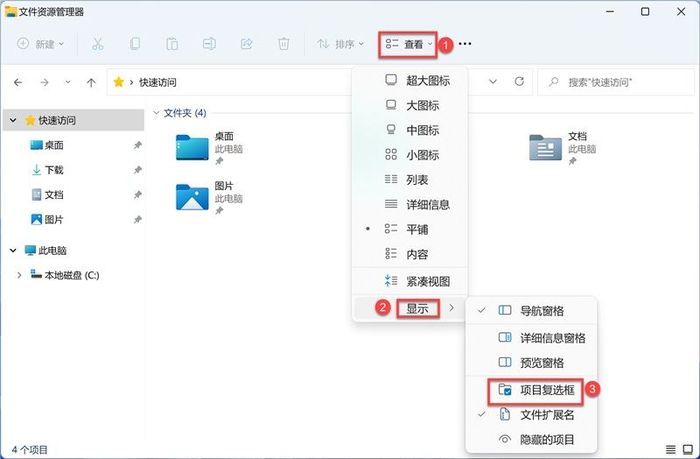 1.巧用项目复选框进行多选 首先需要打开【项目复选框】的开关,在两个系统中也都位于【查看】选项下。 Win10 的文件资源管理器