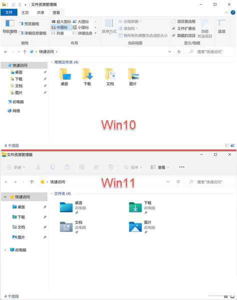 随着 Windows 系统的快速迭代,文件资源管理器也在不断进化。首先,我们从直观上对比一下 Win10 和 Win11 的文件资源管理器的主界面。
