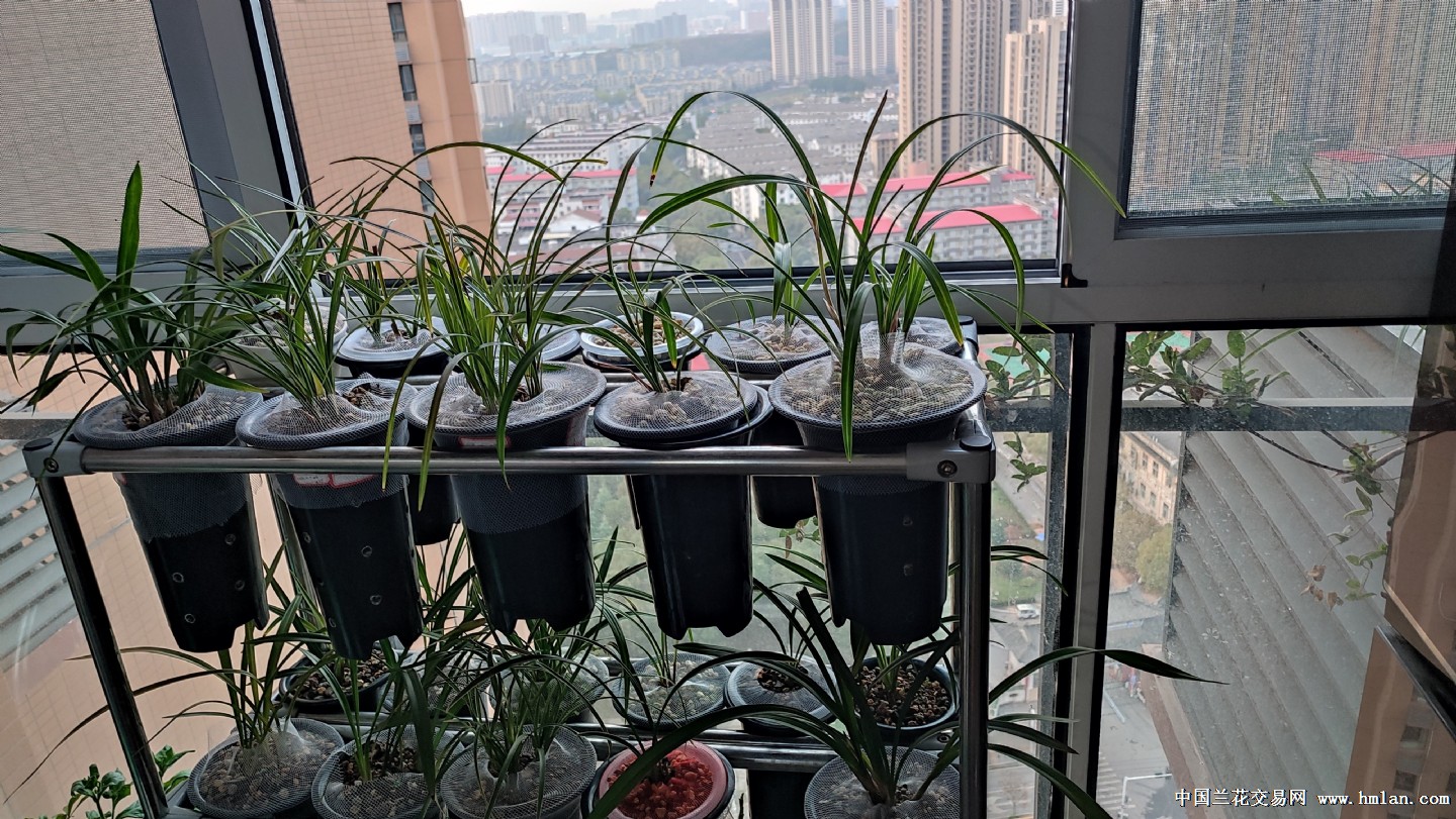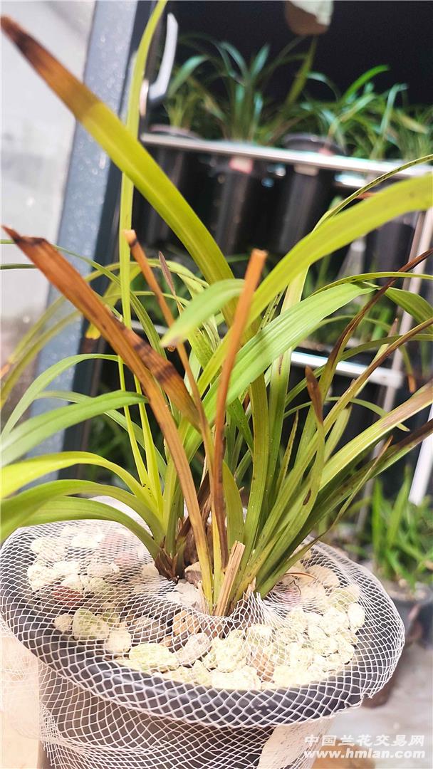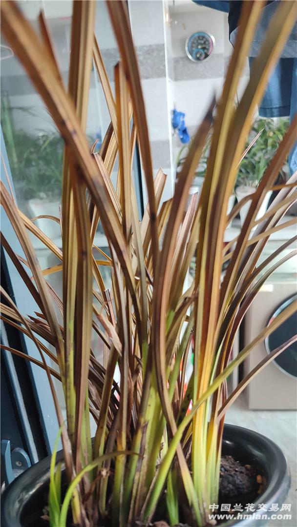 养兰环境介绍:坐标武汉高层南阳台,阳台左右有建筑物凸出可遮挡半日阳光,直晒半日,阳台算半封闭,下部双层钢化玻璃固定窗,上部推拉窗,夏日推拉窗全开通风,三层兰架靠窗,有时记起会拉上纱窗遮下太阳,其余时间无别的遮阳措施。前一个多月武汉温度36到42度,阳台上晚上十点以后温度35到37度持续一个月+,无降温措施。白天上班,具体温度没注意。高温期间2到3天大水浇透风扇吹到天亮,白天无风扇。湿度30%~40%,植料:成品颗粒植料、自己乱配的混合颗粒料