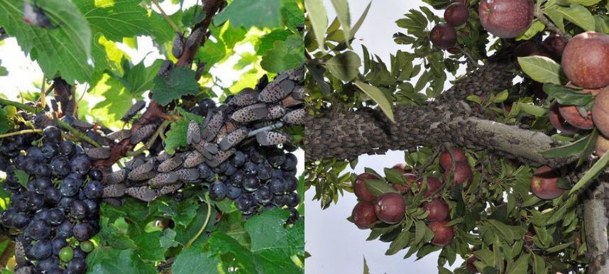 斑衣蜡蝉扎堆取食葡萄和苹果