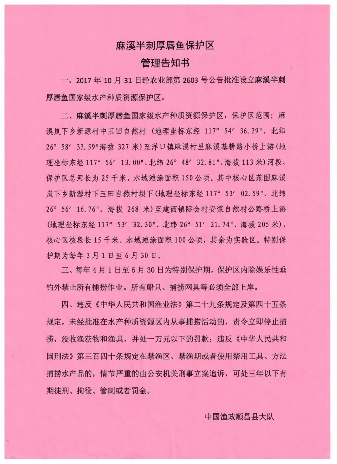 近日,顺昌县检察院联合县农业农村局在建西镇际会村安浆自然村举行麻溪半刺厚唇鱼水产种质资源保护区启动仪式。