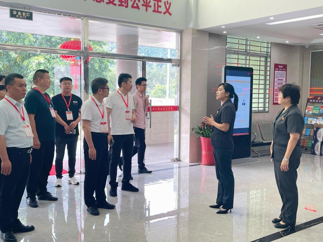 近日,洛江区人大常委到洛江法院开展知识产权审判专题调研,并旁听知识产权案件庭审。洛江区人大常委会主任徐情根、副主任杨文格、何雄峰、赵艺忠、彭朝顺等参加调研,洛江法院党组书记、院长苏益铮陪同调研。