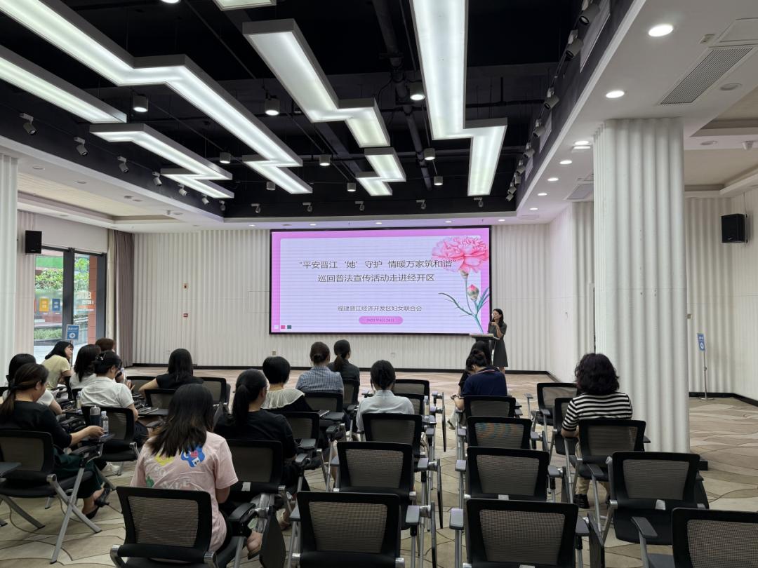 为进一步弘扬社会主义法治精神,提升广大妇女群众的法治意识和依法维权能力,6月20日,晋江法院联合晋江市妇联前往晋江经济开发区开展“白小花说法”线上+线下妇女维权普法宣传活动。干警聚焦妇女职工关心的婚姻家庭、人身权益保护、劳动维权等热点问题,结合实际案例向听众们介绍相关法律知识,引导妇女职工运用法律武器维护自己的合法权益。