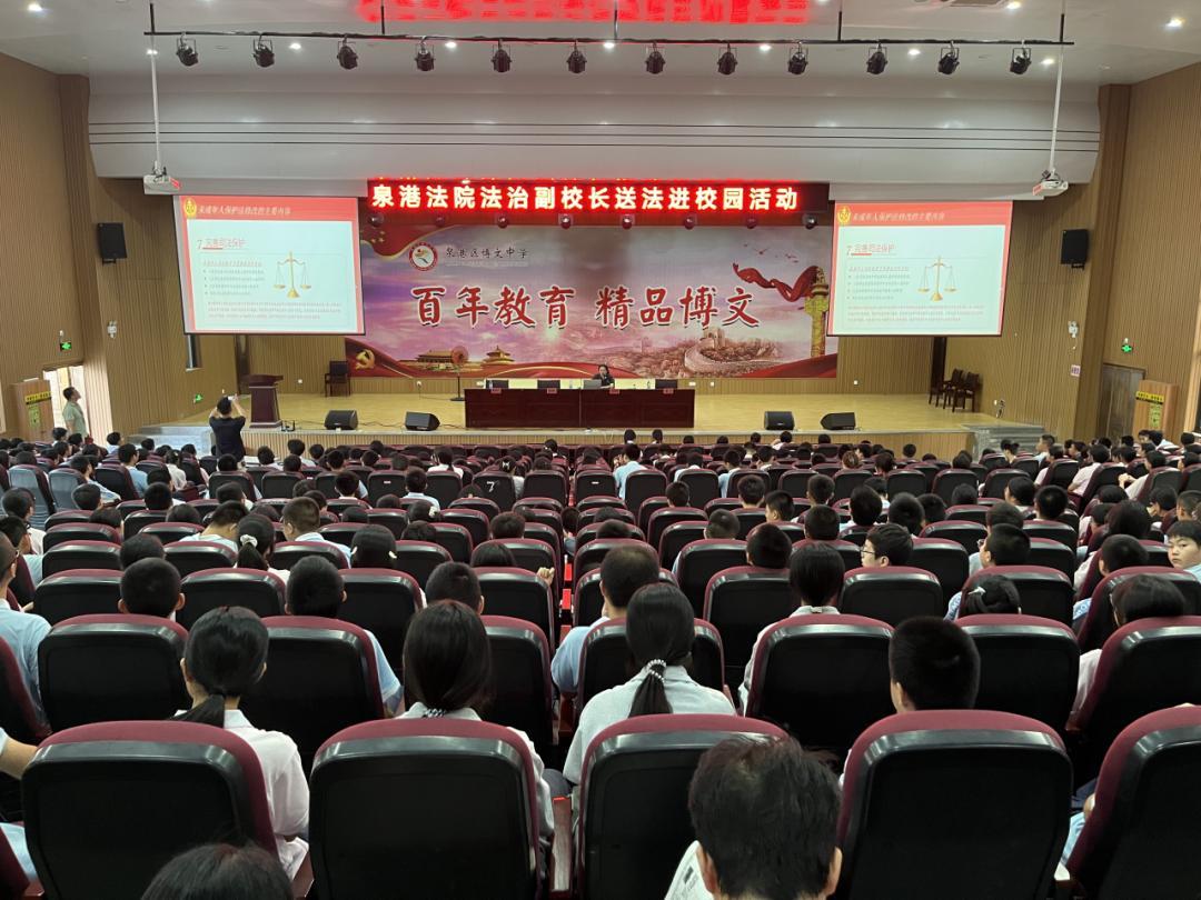 6月25日,泉港法院干警分别走进泉港坝头中学、泉港区博文中学开展法治宣讲活动。通过法条解读、案例分析和法律知识问答等方式,帮助同学们更好地运用法律武器维护自身合法权益。