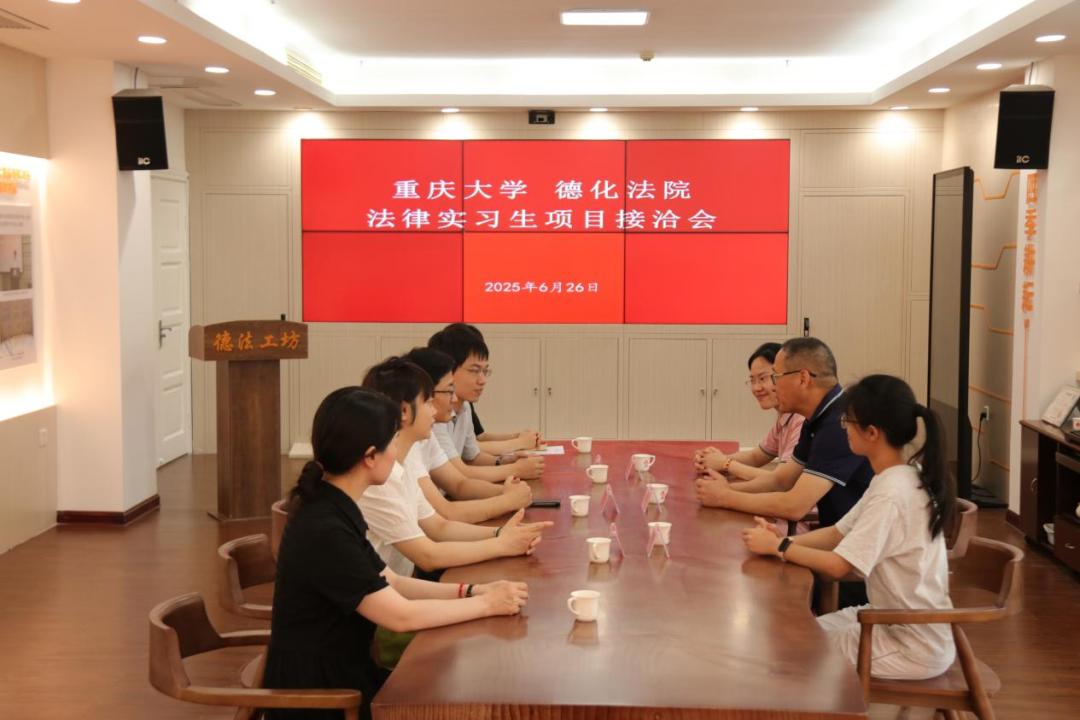 6月26日,重庆大学法学院产学研办主任、科研主任向东升等一行到德化法院就法律实习生项目开展接洽座谈,双方围绕法律人才培养、专业建设、实习实训等方面开展交流。重庆大学法学院弘深青年教师周婧媛博士在德化法院德心赢商代表履职工作室作“企业的知识产权立体化保护”主题的专题授课,入驻德心赢商代表履职工作室的人大代表及县人大、县法院等30多人参加讲座。