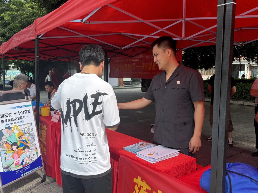 6月24日,丰泽法院联合临海街道、丰泽区教育局、法石社区等单位在真武庙广场开展以“人人讲安全、个个会应急——查找身边的安全隐患”为主题的普法宣传活动。活动现场,干警通过发放宣传资料、现场讲解等方式,深入宣传安全生产知识,普及相关法律法规,切实提高广大群众的安全生产意识。