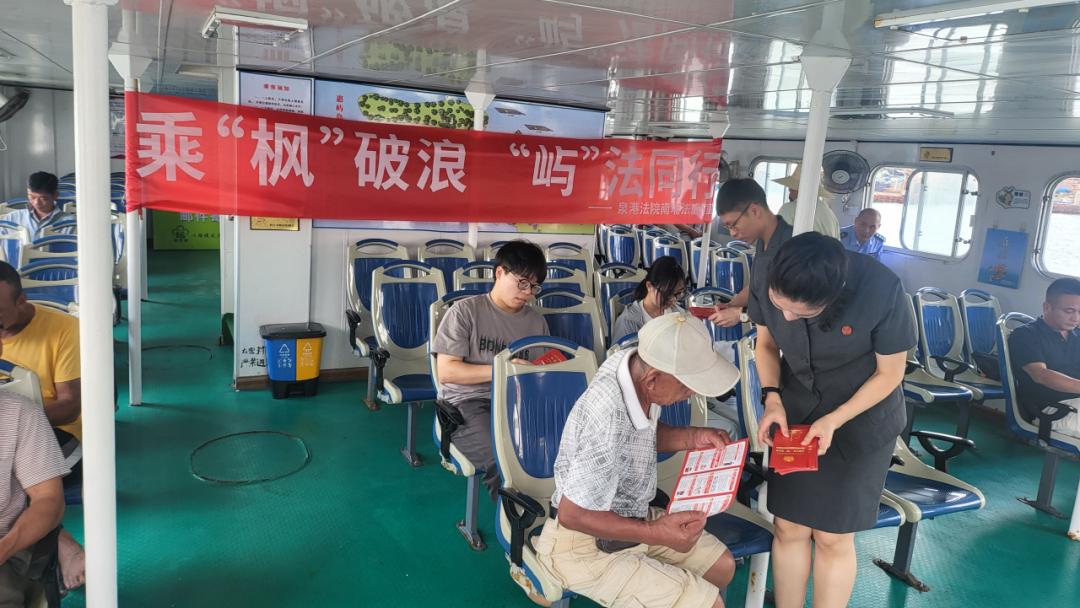 近日,泉港法院南埔法庭“和风惠屿巡回法庭”开展“乘‘枫’破浪,‘屿’法同行”主题系列活动。法院干警通过与海岛群众深入互动、开展普法讲座等形式,提高群众运用法律维护自身合法权益的能力。同时,参观了惠屿村党建引领乡村振兴展示厅、党恩广场等地,深刻感悟惠屿岛“知党恩、听党话、跟党走”精神,进一步激发干警们干事创业的精气神。