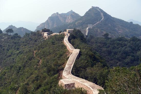 锥子山长城大毛山段修缮后的容貌。  新华社 图