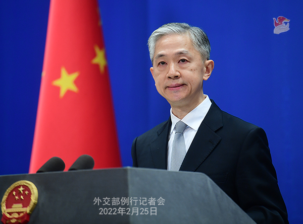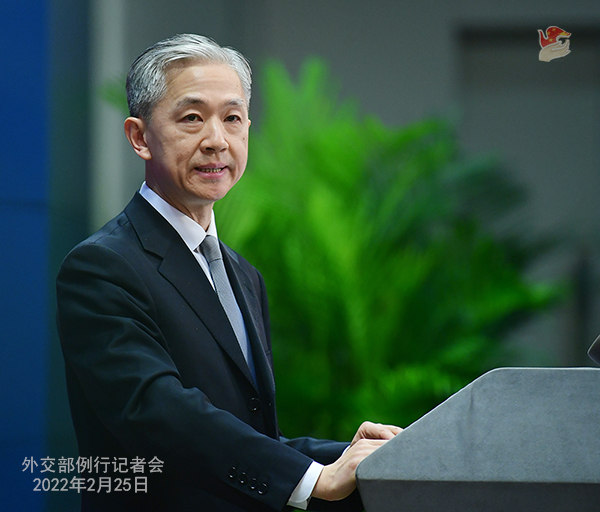 汪文斌:当前形势下,政治解决乌克兰问题的大门并没有完全关上。我们希望有关当事方保持冷静和理性,致力于根据联合国宪章原则,通过谈判和平解决有关问题。中方将继续以自己的方式劝和促谈,欢迎并鼓励一切致力于推动外交解决的努力。