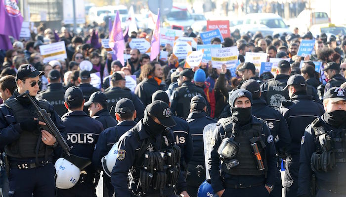 2016年11月22日,土耳其安卡拉,民众在议会前抗议强奸幼女合法化草案。图片来源:视觉中国