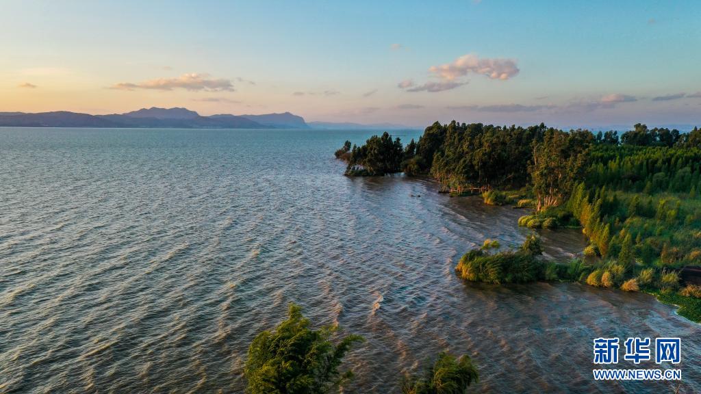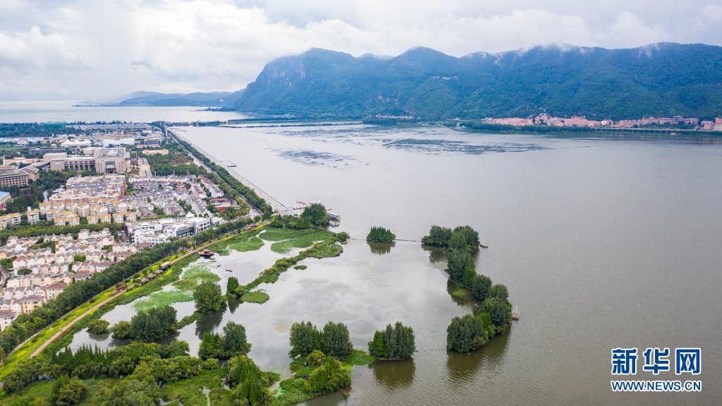 7月1日拍摄的滇池湿地一景(无人机照片)。新华社记者 胡超 摄