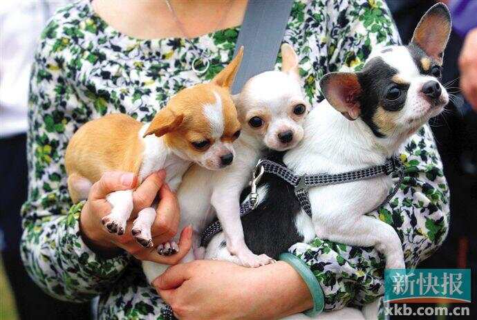 ■市民抱着狗狗逛街。新快报记者 宁彪/摄
