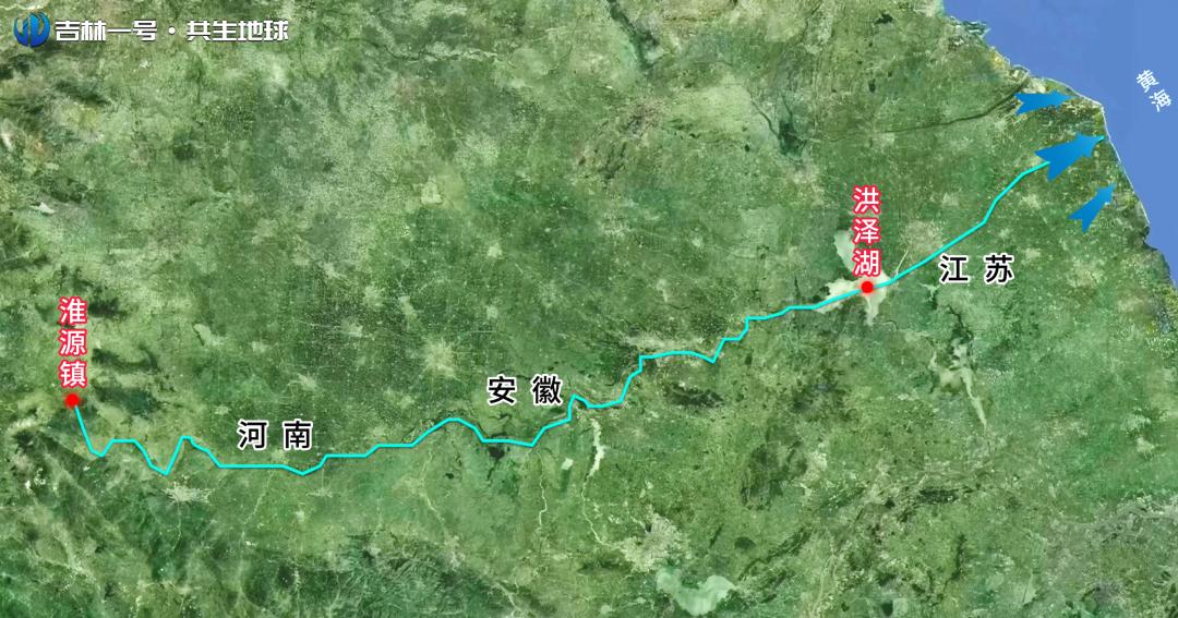 淮河是长江和黄河之间的大河,发源于河南省南阳市淮源镇桐柏山太白顶西北侧河谷。淮河源地区支流众多,入海口通道也发生了多次改变。其干流流经河南、安徽、江苏三省,在流至江苏省洪泽湖后,于淮河入海水道向东注入黄海。全长约1000公里,流域面积约27万平方公里。