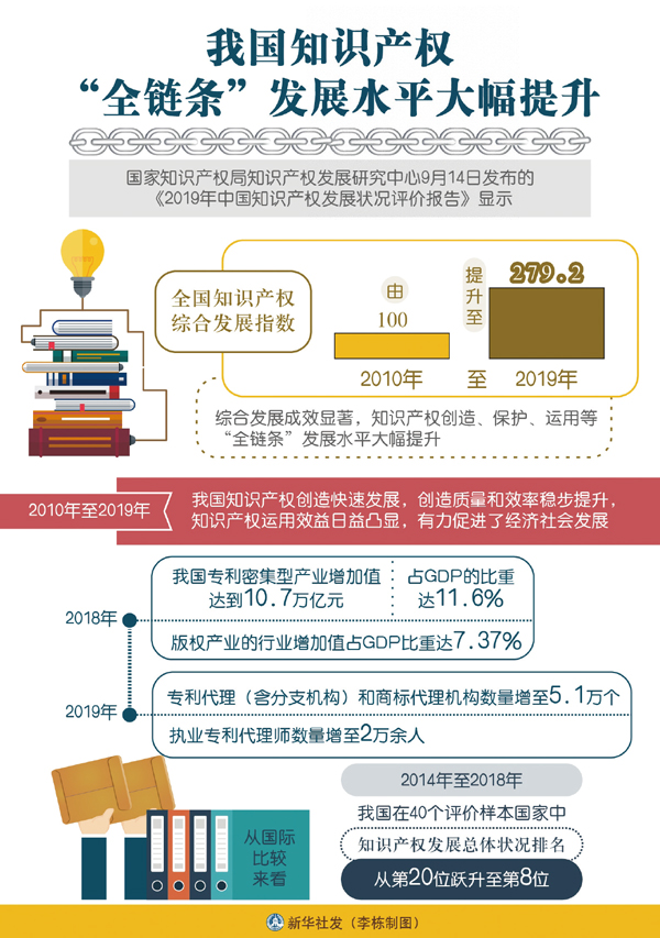 加强知识产权保护,不仅是维护内外资企业合法权益的需要,更是推进创新型国家建设、推动高质量发展的内在要求。国家版权局指出,在知识经济时代,受版权保护的智力成果,作为一种具有财富属性、产品属性和高附加值属性的重要生产要素和财富资源,支撑着新闻出版、广播影视、文学艺术、文化娱乐、工艺美术、计算机软件、信息网络等版权产业的健康发展。有关统计显示,2019年我国版权产业行业增加值达7.32万亿元,占GDP的比重为7.39%,版权产业对我国经济结构优化升级和高质量发展发挥了重要的作用。