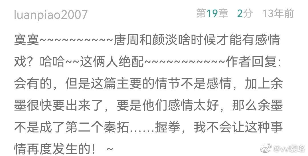4、只要真的都看过书就知道颜淡只喜欢过应渊,对唐周根本没有动过心,而戏份多的却是唐周,颜淡都没再次爱上应渊,这段失败的初恋在回忆部分就已经BE的彻底了。作者给唐周戏份多其实根本没必要,他戏份多也只是为了证明女主不爱他,戏份少同样可以体现,然后论推动剧情的重要性,柳维扬都超过他,他比余墨更像背景板和工具人,就是一个水到不能再水的角色,也不怪好多书粉都不记得他这个角色。