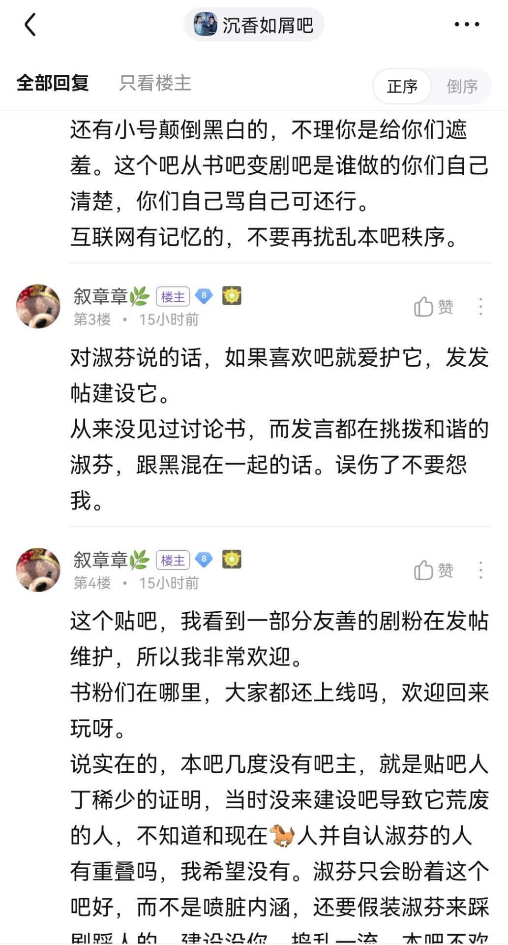 ③抢小说百度官方贴吧,还修改了头像。第一任吧主气走书粉之后立马交接给了第二任吧主,演员粉跑贴吧发剧照就没事,书粉说一句魔改换男主就不行,连友情劝演员粉别占着小说贴吧的吧主位置都不可以,直接把你当黑子屏蔽。