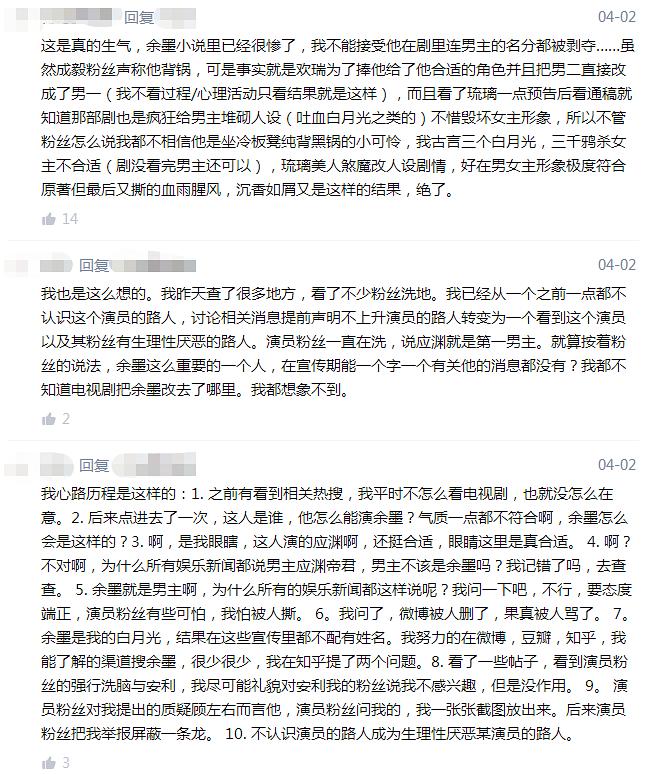 ④真书粉应该都遭遇过,但凡提一句电视剧换男主,十有八九会有人来控评洗脑KY把你打成黑子。