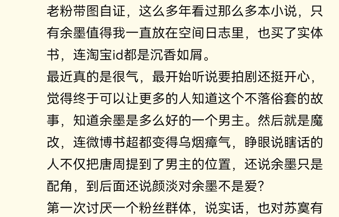 发这些纯粹是为了澄清事实,书剧分离,实事求是,不希望书粉过多的关注剧的话,也希望演员粉不要再为了否认电视剧魔改的事到处捂嘴造谣洗脑拉踩纸片人,纸片人,作者,书粉都不欠你们。