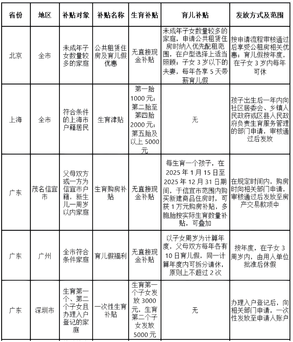 23个地方在不同层级探索实施生育补贴制度