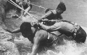 千钧一发之际,宝坻支队副政委刘智礼纵身一跃跳入急流。就在大家呼喊着“救人”时,刘智礼从水中钻了出来,他挥动手臂指挥民工,向他指示的方位投大石头。幸亏他及时找到了关键位置,大坑才没有继续扩大,大坝转危为安。