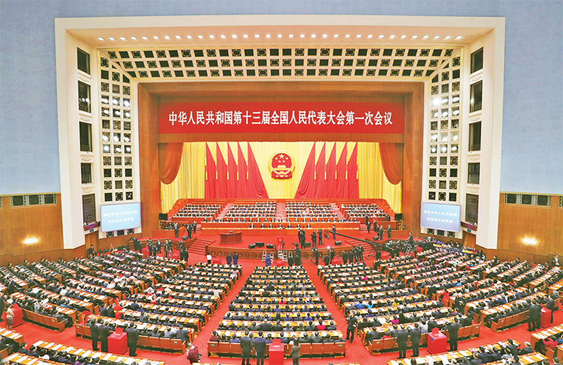 宪法是国家的根本法。坚持依法治国首先要坚持依宪治国,坚持依法执政首先要依宪执政。2018年3月11日,十三届全国人大一次会议在北京人民大会堂举行第三次全体会议,表决通过了《中华人民共和国宪法修正案》,图为表决现场。 新华社记者 王晔/摄