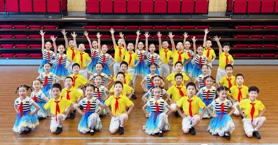 闵行区七宝镇明强小学西校集体舞队,是一个由热爱舞蹈、充满朝气的小学三、四、五年级学生组成的欢乐大家庭。在这里,每一个成员都怀揣着对舞蹈的热忱与梦想。大家团结协作,在排练中相互鼓励、共同进步。排练场上,大家挥洒汗水,认真打磨每一个动作、每一个队形,力求将最完美的表演呈现给观众。演出时,我们身着绚丽的服装,在舞台上尽情绽放光彩,用灵动的舞姿传递着情感与活力。