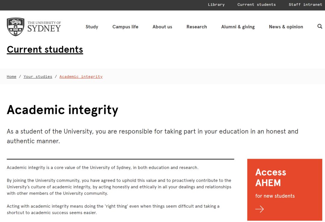 (官网网址:https://sydney.edu.au/students/academic-integrity.html)