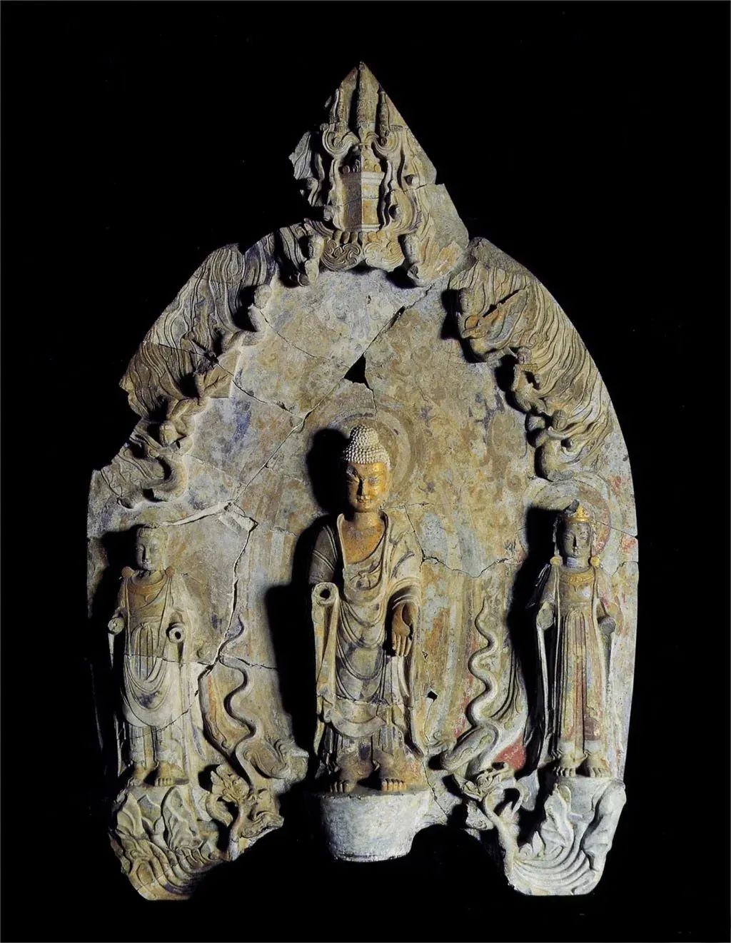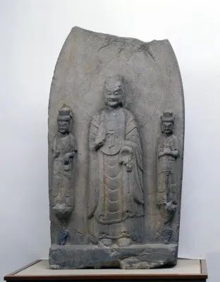 东魏贴金彩绘石雕佛菩萨三尊像