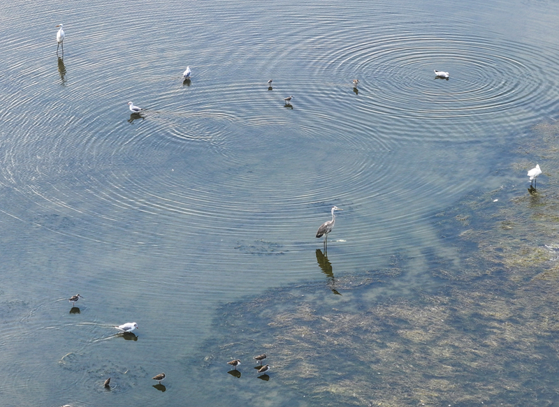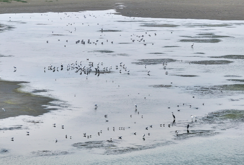 8月25日,群鸟栖息在东台条子泥湿地“720”高潮位栖息地(无人机照片)。