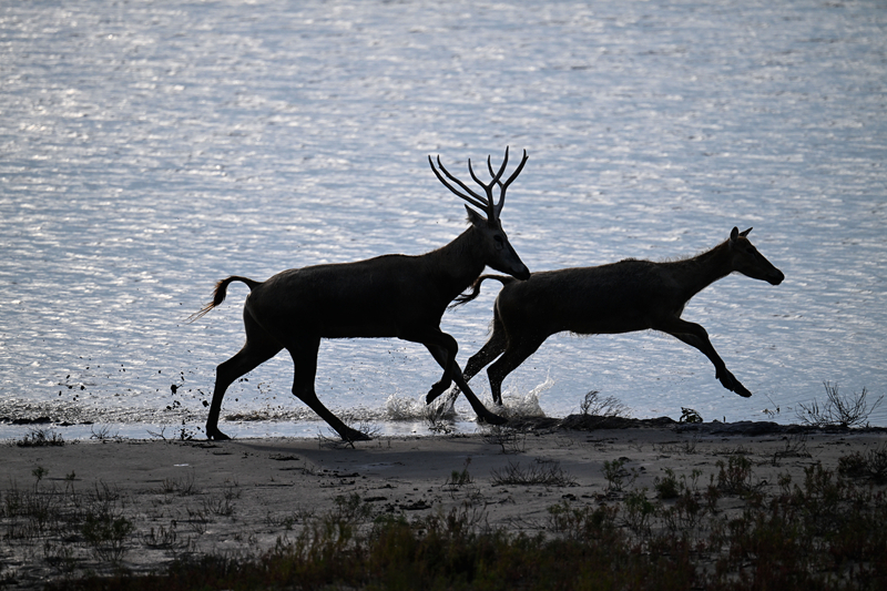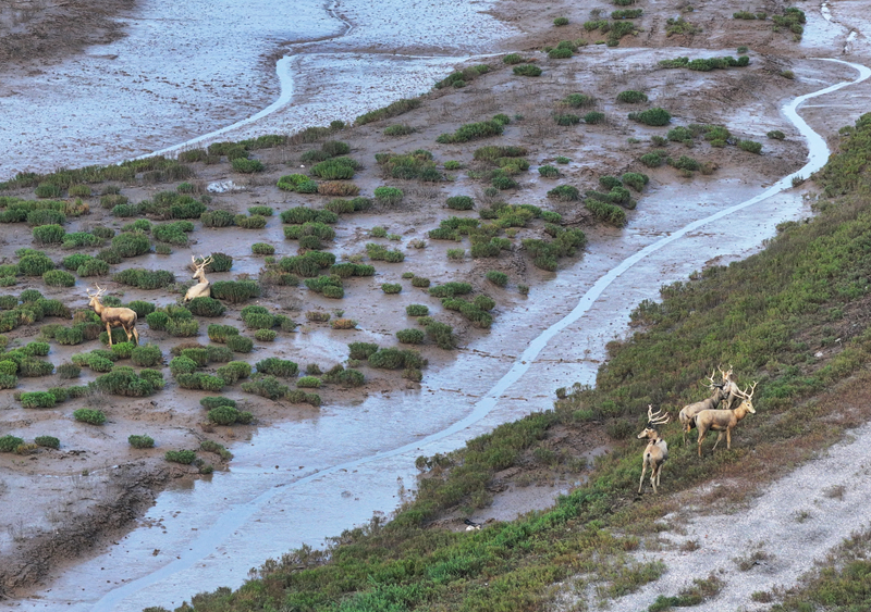 8月25日,野生麋鹿栖息在川水湾(无人机照片)。