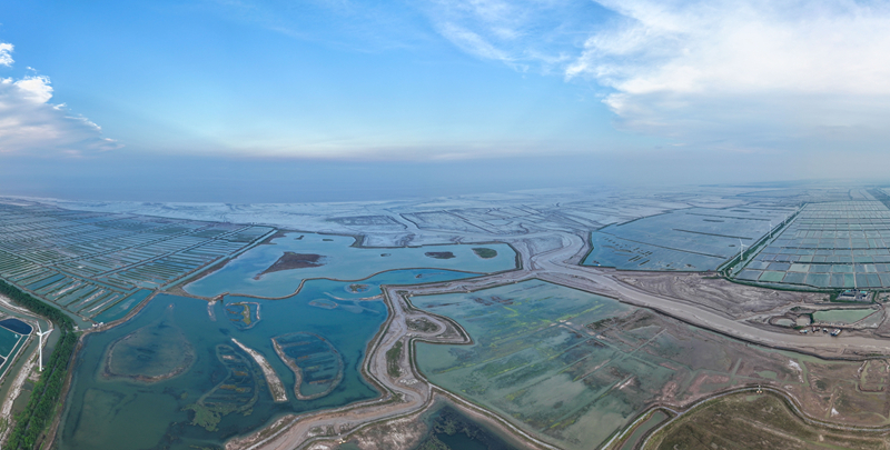 8月25日拍摄的东台条子泥湿地“720”高潮位栖息地(无人机照片)。