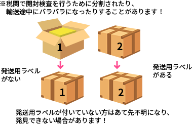 複数の箱をガムテープや紐でひとつにして発送しないでください!