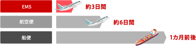 海外への発送は輸送時間が長く、積み替え回数も多く、現地での配送方法も日本国内とは異なります。