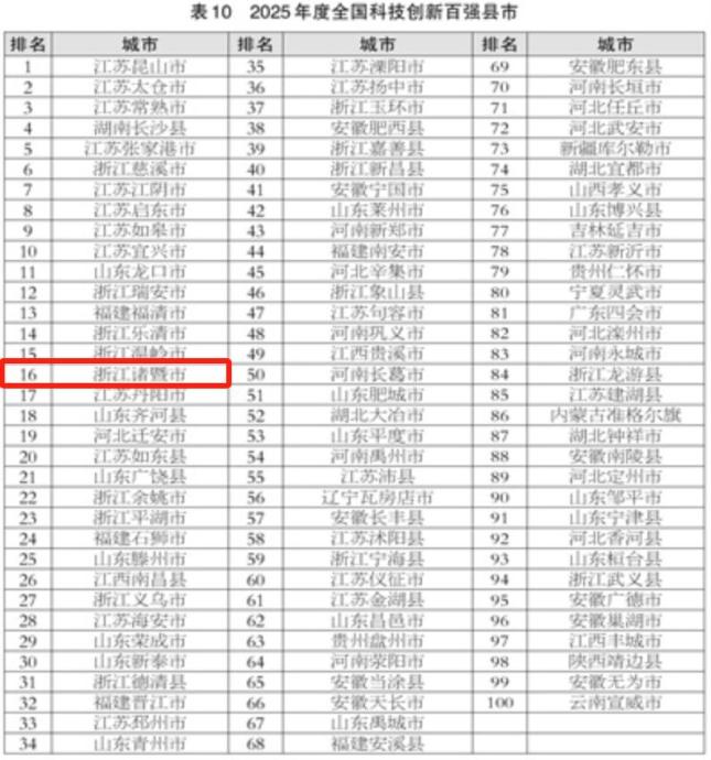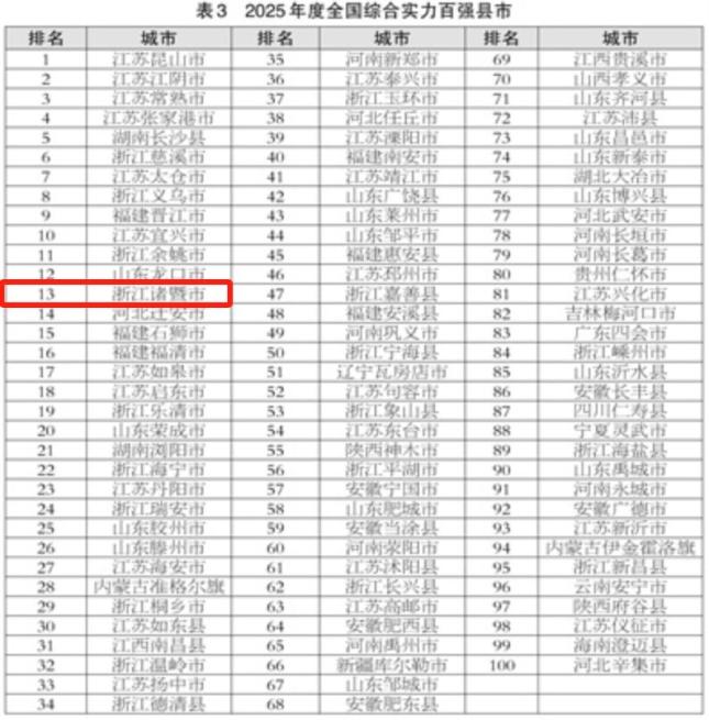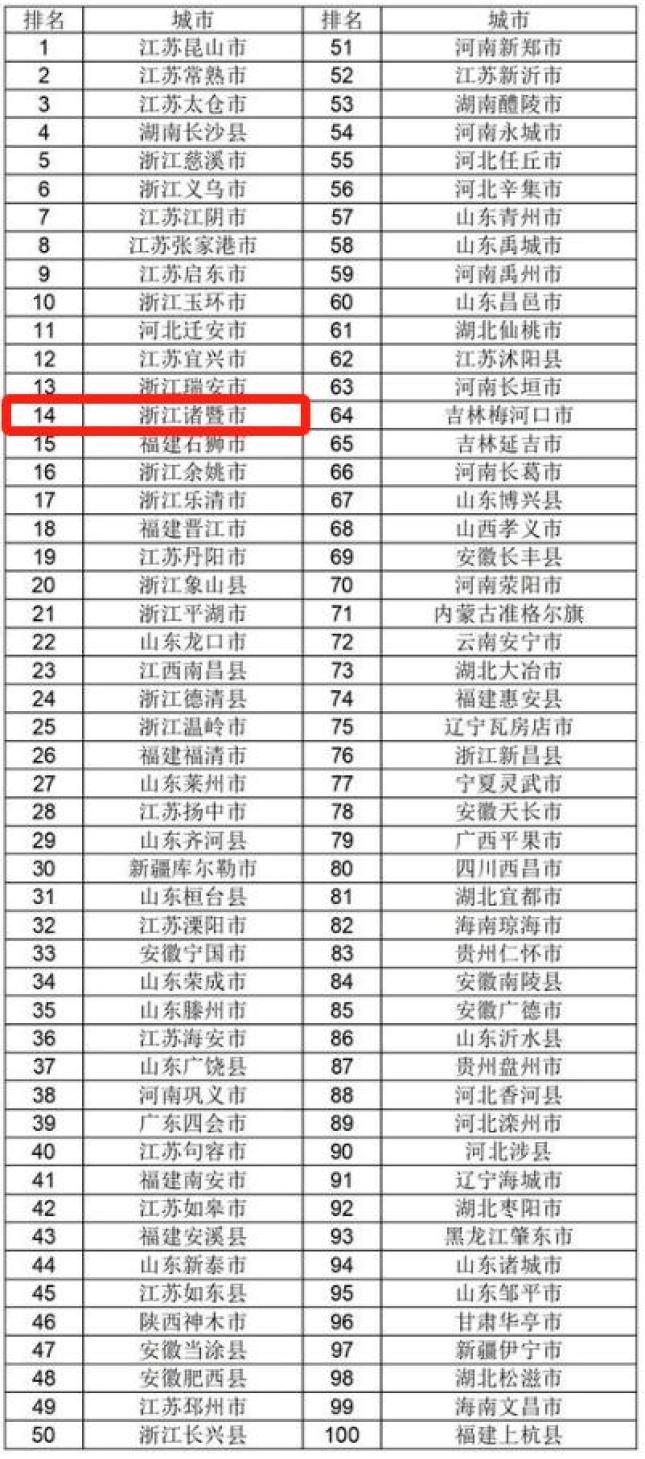 诸暨荣登全国百强!