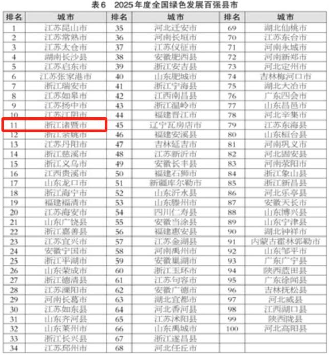 原标题:《最新发布!全国百强,诸暨4项上榜!》