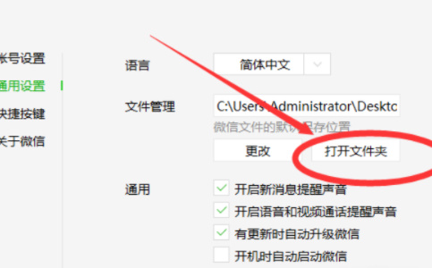 3、点击文件管理右下方【打开文件夹】,这里就是打开微信文件保存微信传输助手文件的文件夹。