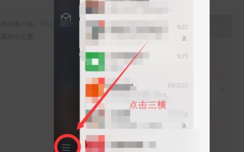 1、首先我们在电脑上登录微信客户端,点击右下角的三条横杠。